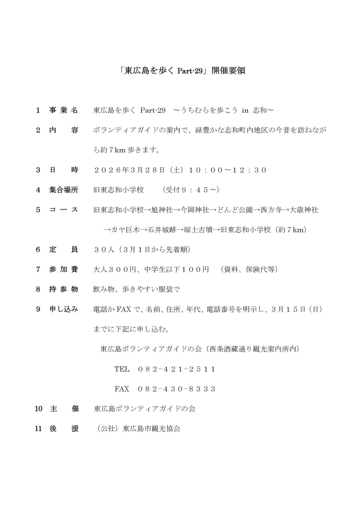 2026年3月28日(土)、「東広島を歩く Part-29 ~うちむらを歩こう in 志和~」が開催されます!