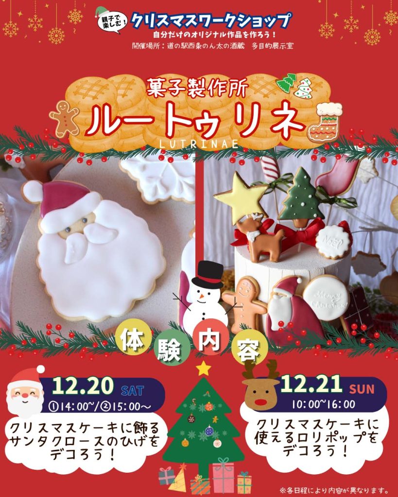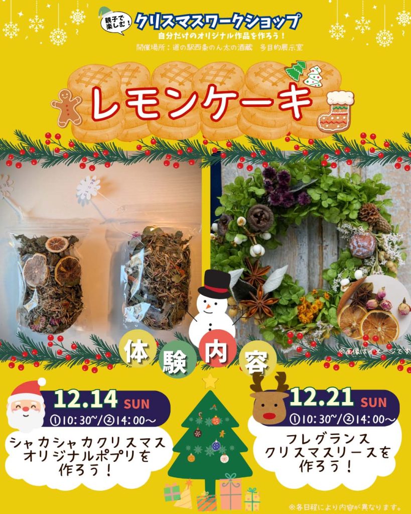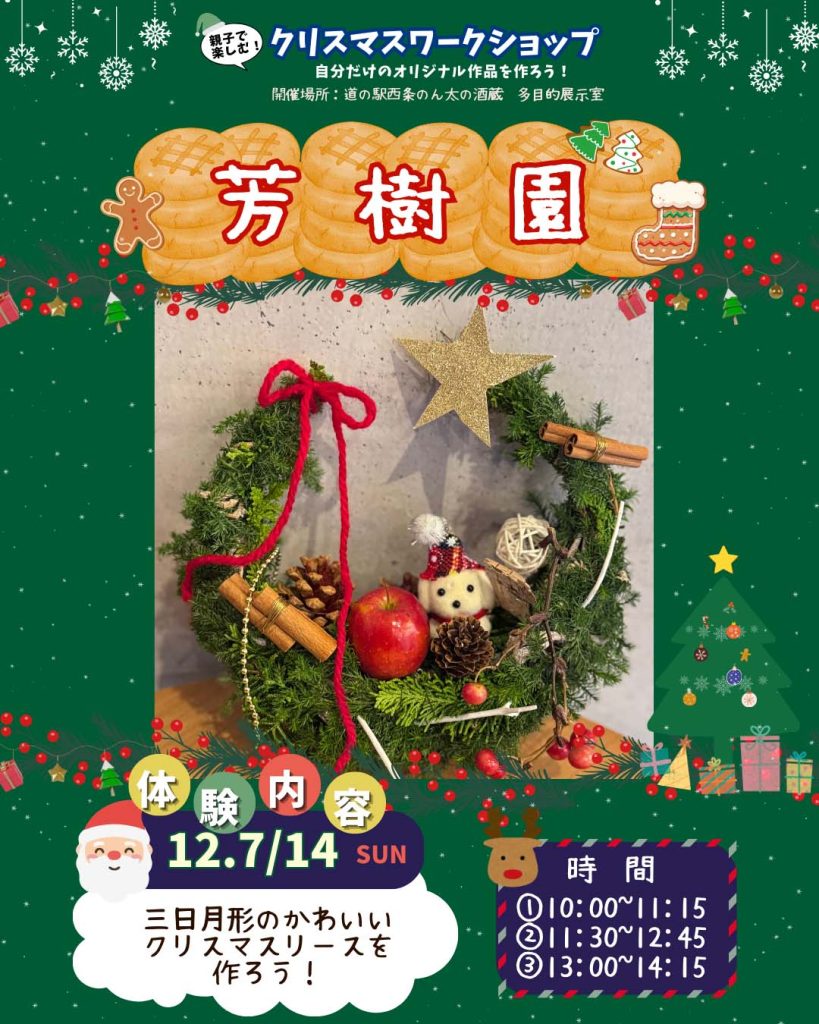 2025年12月7日(日)・14日(日)・20日(土)・21日(日)、道の駅西条のん太の酒蔵にて「親子で楽しむ!クリスマスワークショップ」が開催されます!
