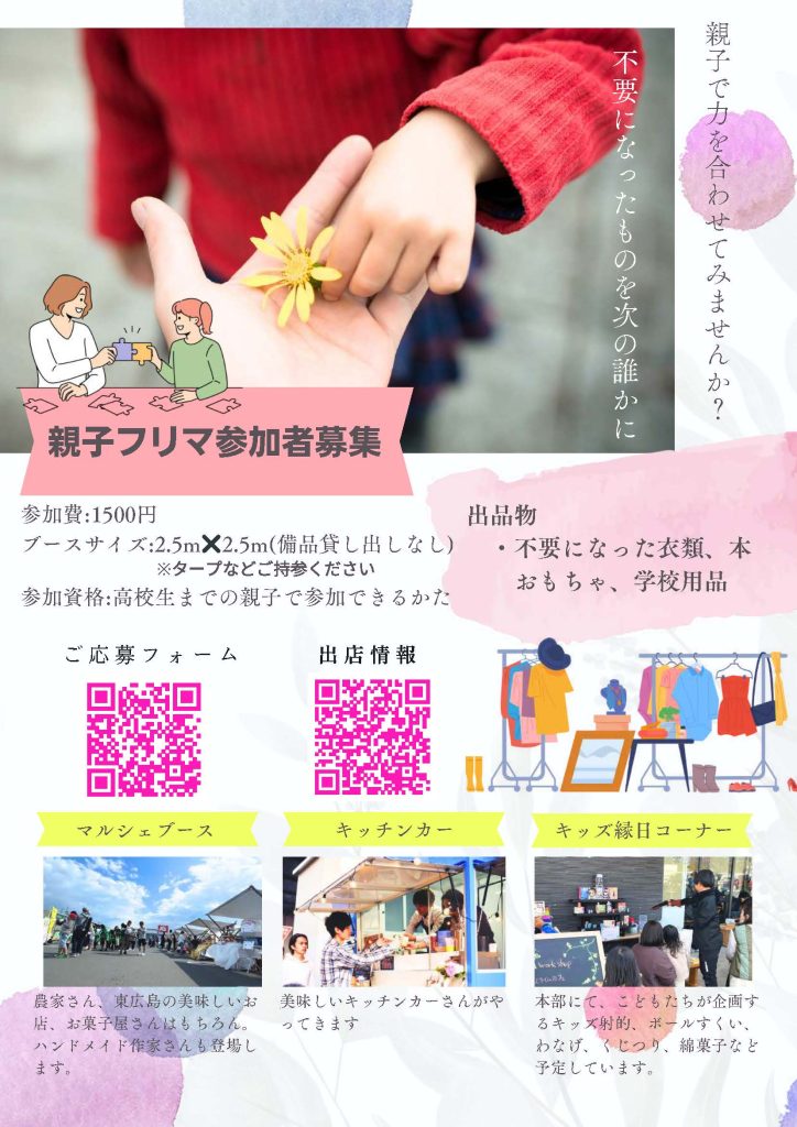 「いらなくなったモノを捨てるのではなく、次の誰かにシェアする」をコンセプトに、親子で楽しめるフリーマーケットを開催します。