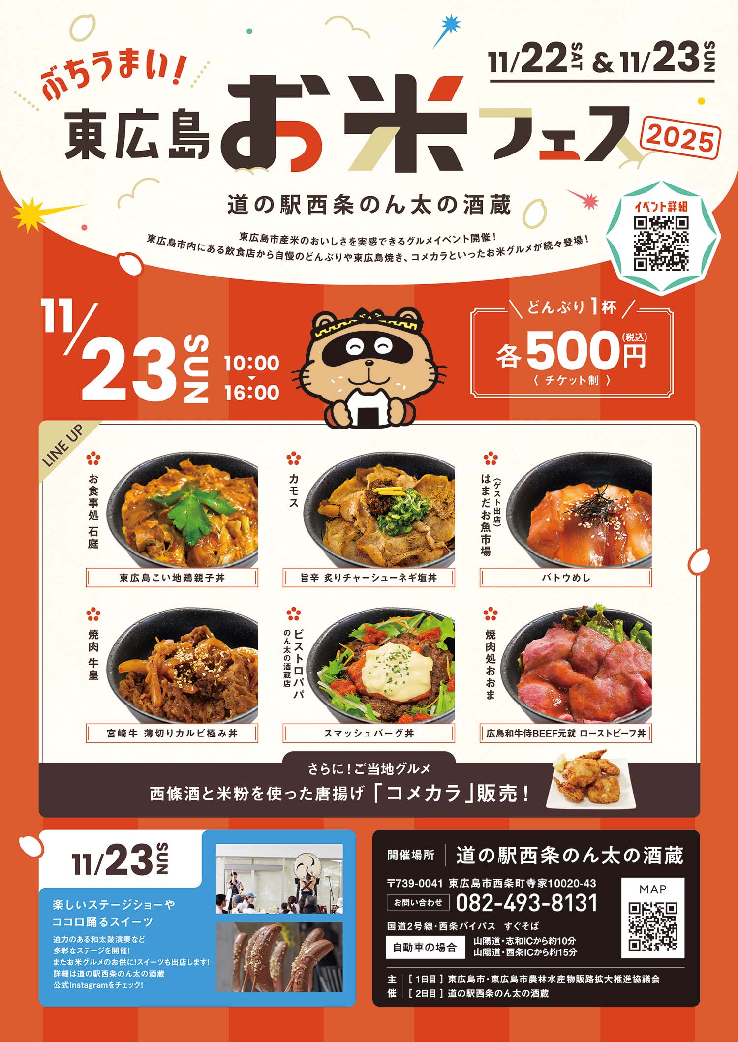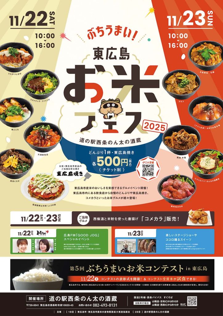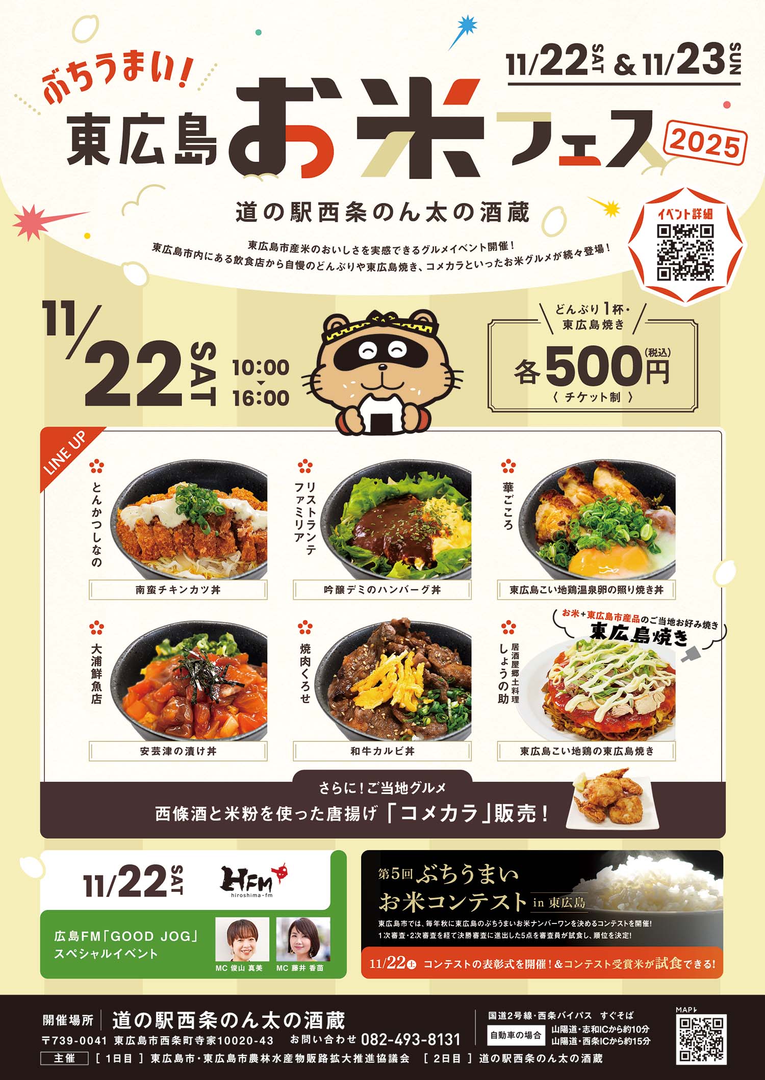 2025年11月22日(土)・23日(日)、道の駅西条のん太の酒蔵にて「ぶちうまい!東広島お米フェス2025」が開催されます!