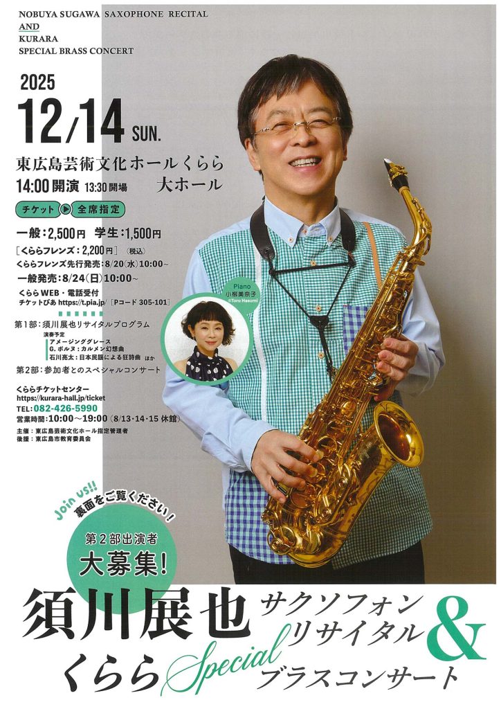 2025年12月14日(日)、東広島芸術文化ホールくららにて「須川展也サクソフォン・リサイタル&くららSpecialブラスコンサート」が開催されます!