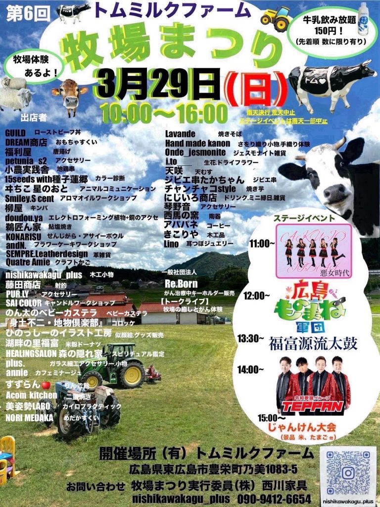 2026年3月29日(日)、東広島市豊栄町のトムミルクファームにて「第6回牧場まつり」が開催されます!
