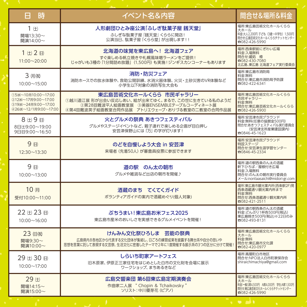 西条酒蔵通りなど東広島市内で開催される一部イベント情報をご紹介します。