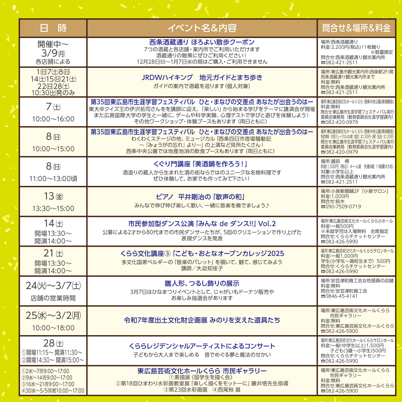 西条酒蔵通りなど東広島市内で開催される一部イベント情報をご紹介します。