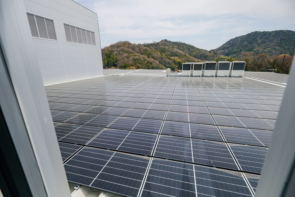 ここから見えるのは、ずらりと一面配置されたソーラーパネルです。その数なんと、3270枚!環境にも、しっかり配慮されています。