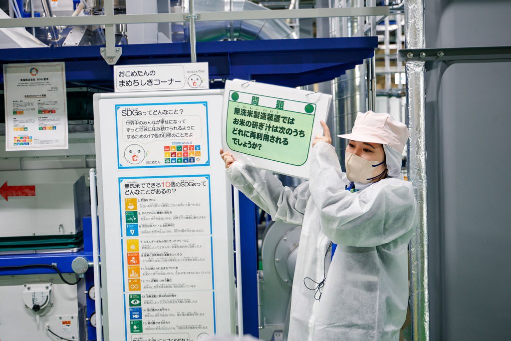 こちらは、日本の精米工場に数ヵ所しか設置されていない希少なものだとか。ウルトラマイクロバブル水が白米を洗い、米本来のおいしさをアップ。さらに、洗米と脱水工程を2回設けるマルチパス方式で、優しくお米を洗い流します。化石燃料を用いないため、CO₂ 排出量の削減にも繋がっているのだとか!