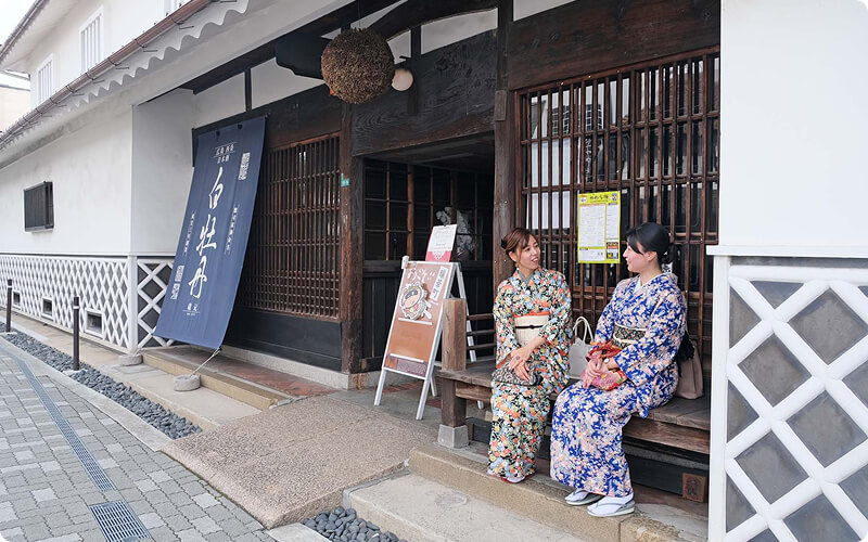 酒蔵では伝統の技で酒造りが行われ、白壁の蔵や赤レンガの煙突が並ぶ町並みを散策できます。