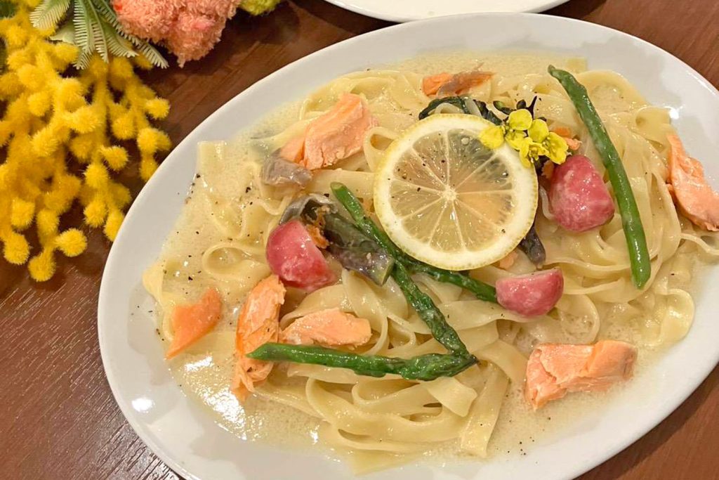 もちもち食感の生パスタや彩り豊かな前菜を中心に、日本酒との相性を考えた一皿が楽しめます。