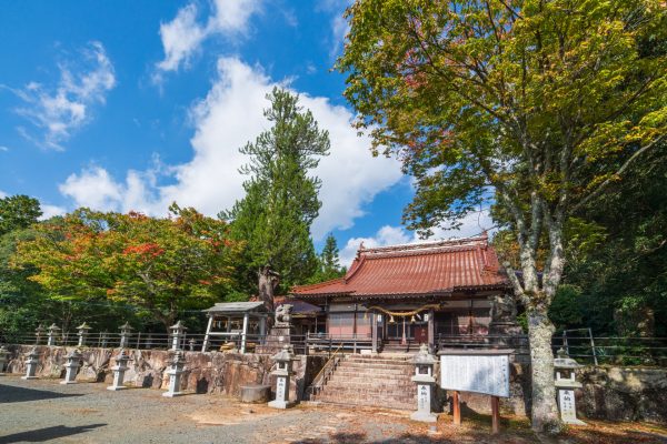 豊栄町南部の乃美・別府の氏子300戸に守られている本宮八幡神社。標高400mほどの丘陵地に位置し、社叢は広島県の天然記念物です。参道や社殿の周囲に、モミ、スギ、ヒノキ、ツクバネガシ、ウラジロガシなどの樹林が広がり、胸高幹囲3mを超えるスギの大木も多く見られます。現在の拝殿は江戸時代中期の1701年(元禄14年)に本殿として造営されたもので、東広島市内で最大級、最古の神社建築(市重要文化財)。他にも、平安時代終わり頃の紙本墨書大般若経(600巻、県重要文化財)が今に伝わります。