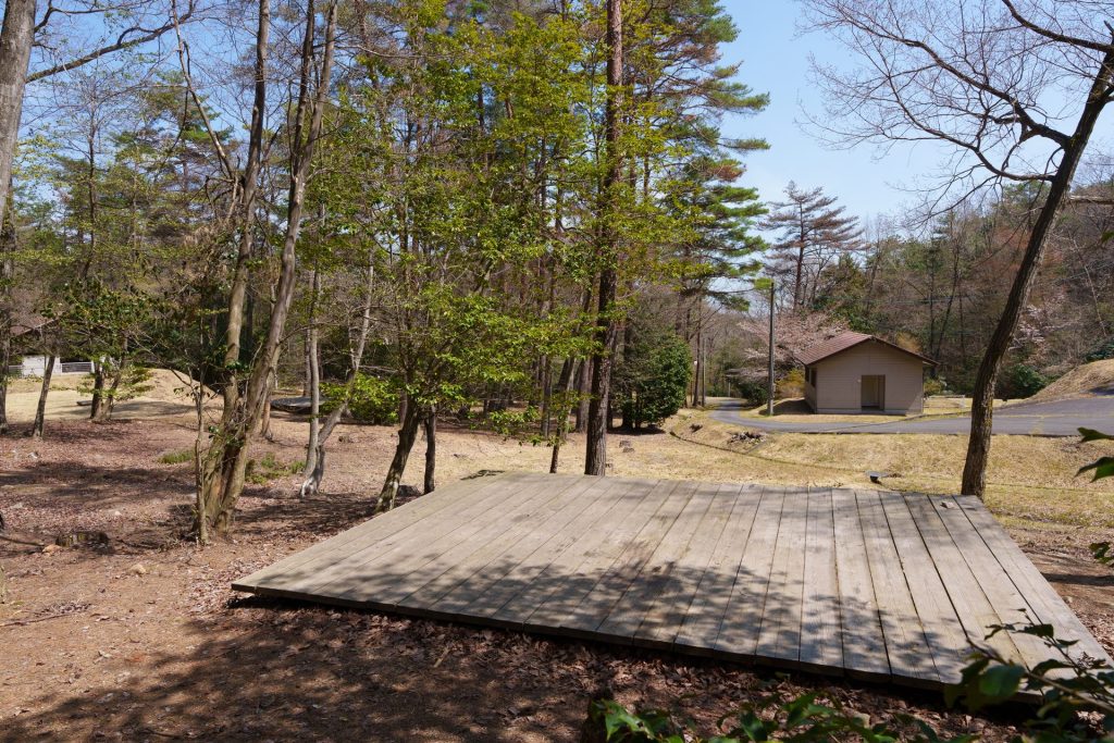 自然に囲まれた園内には3つのテントデッキやテントサイト、炊事棟を整えた林間キャンプ場が整備されており、事前申込は不要、無料で利用可能です。また、作業棟(有料・要事前申込)や水洗トイレ、遊歩道も設置されています。