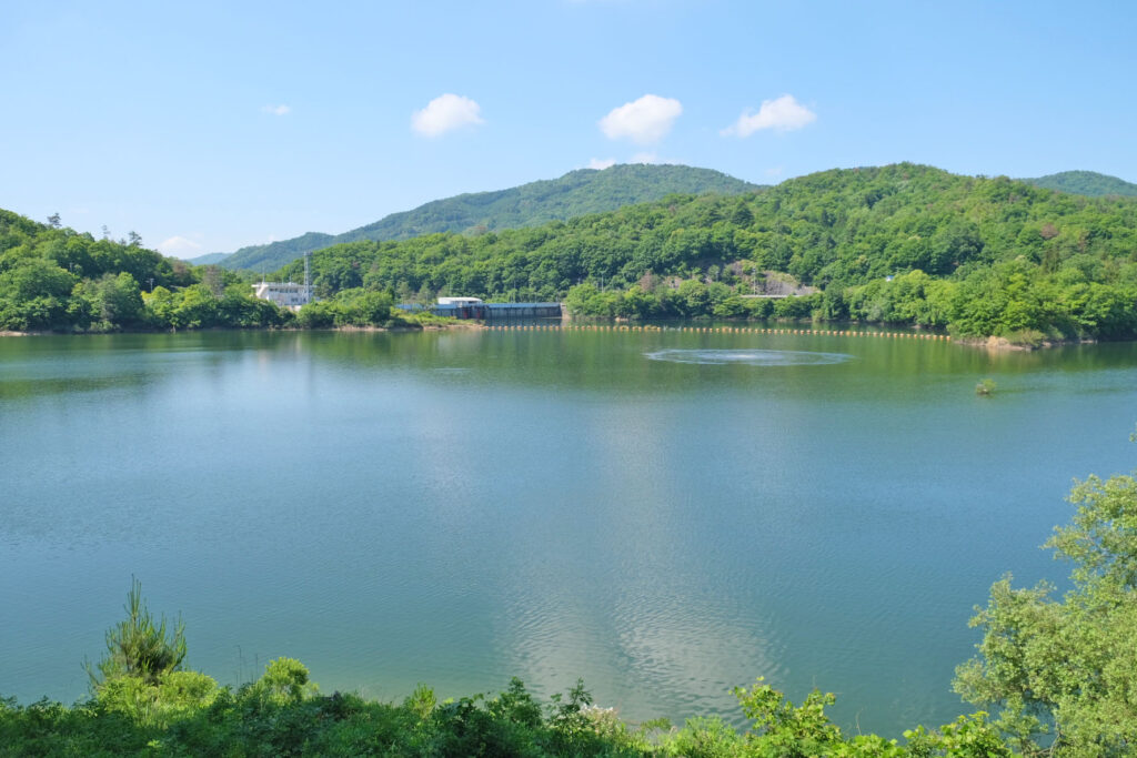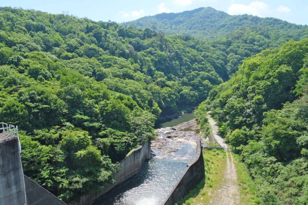 多目的ダムとして建設された椋梨川上流に位置する椋梨ダム。洪水調節や水道用水、工業用水の供給・発電の役割を果たしています。